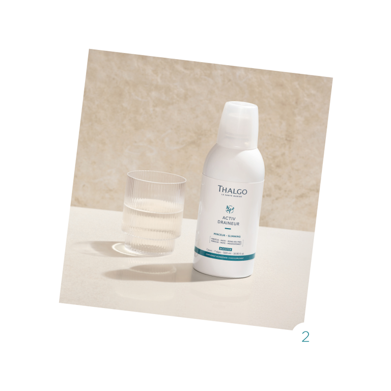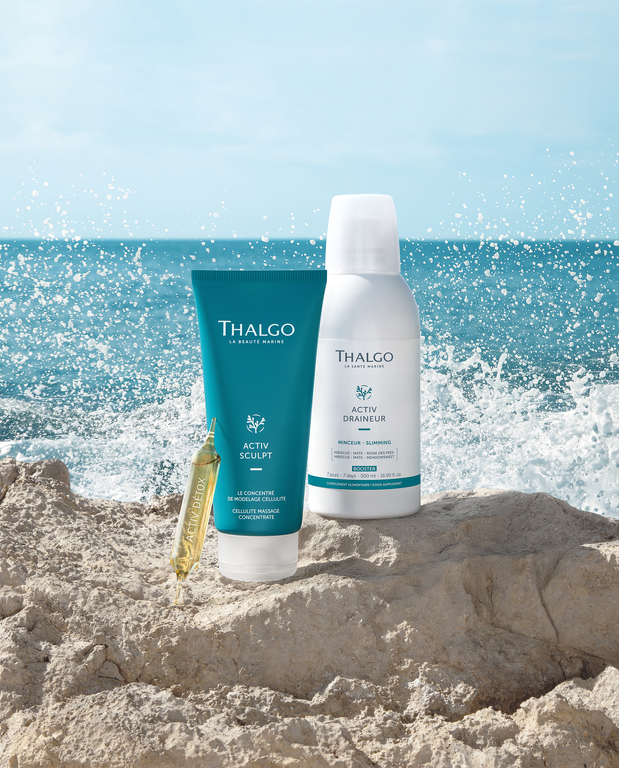 Muitas vezes, a perda de peso estagna devido à saturação dos órgãos que fazem a desintoxicação, fazendo com que o organismo passe a armazenar as toxinas no tecido adiposo. Esse processo bloqueia a lipólise, contribuindo para o aumento de massa corporal e perda de firmeza. O método de adelgaçamento 360° da Thalgo, que combina cuidados profissionais, nutricionais e cosméticos, integra algas microfragmentadas patenteadas com 54 nutrientes eficazes na redução da retenção de líquidos e da celulite.