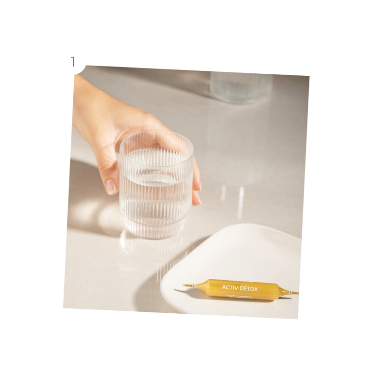 A primeira etapa é dedicada à purificação do organismo e preparação dos tecidos. O protocolo profissional inicia-se com Activateur Détox, uma etapa que combina um envolvimento de algas microfragmentadas em tripla camada com uma massagem específica em zonas-chave do corpo. Este processo estimula a microcirculação, favorece a eliminação de toxinas e completa-se com uma massagem inspirada na reflexologia.