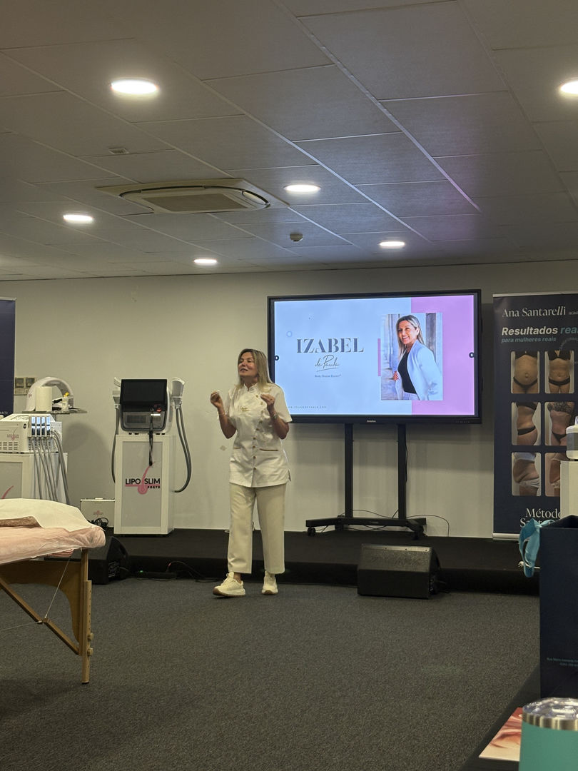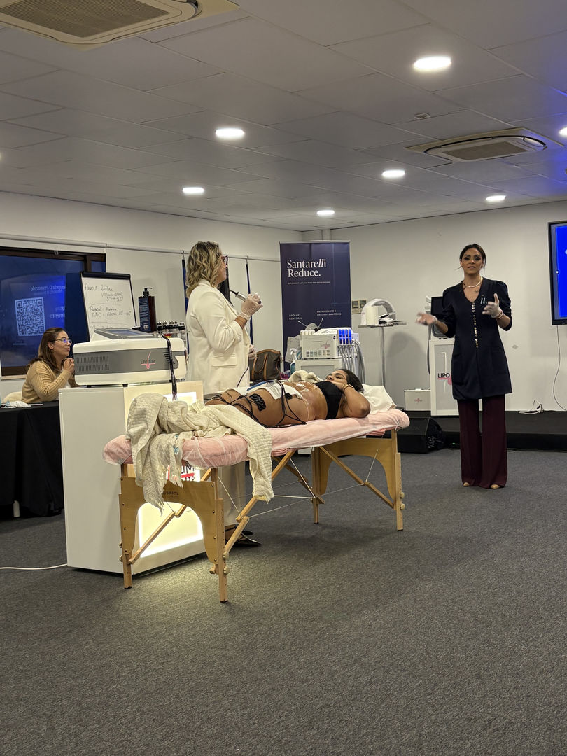 A experiência do Método Santarelli x Liposlim foi além de uma simples formação, foi um reposicionamento de carreira para os profissionais presentes. O dia começou com uma base teórica sólida sobre o que sustenta este método de estética avançada e regenerativa: uma abordagem não invasiva, orientada para harmonização corporal, com foco em resultados visíveis em 48 horas, mas sobretudo com uma lógica de personalização e visão holística, aquela ideia, repetida ao longo do evento, de tratar “de dentro para fora”. Esta introdução ajudou a enquadrar o método como algo que não se limita a técnica, envolve intenção, leitura do cliente, consistência de acompanhamento e construção de confiança. É mais do que trabalhar o corpo, é ajudar o cliente a trabalhar a sua própria autoestima.